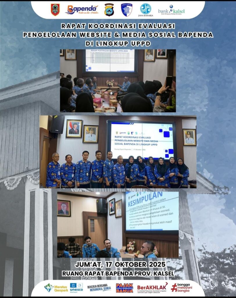 Jumat, 17 Oktober 2025, Badan Pendapatan Daerah (Bapenda) Kalimantan Selatan menyelenggarakan rapat koordinasi evaluasi pengelolaan website dan media sosial di