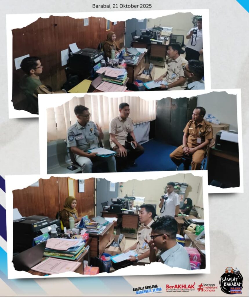 Barabai, 22 Oktober 2025 — Tim Inspektorat Provinsi Kalimantan Selatan melaksanakan kunjungan kerja ke UPPD/Samsat Barabai dalam rangka evaluasi pembangunan