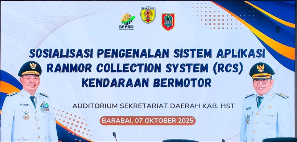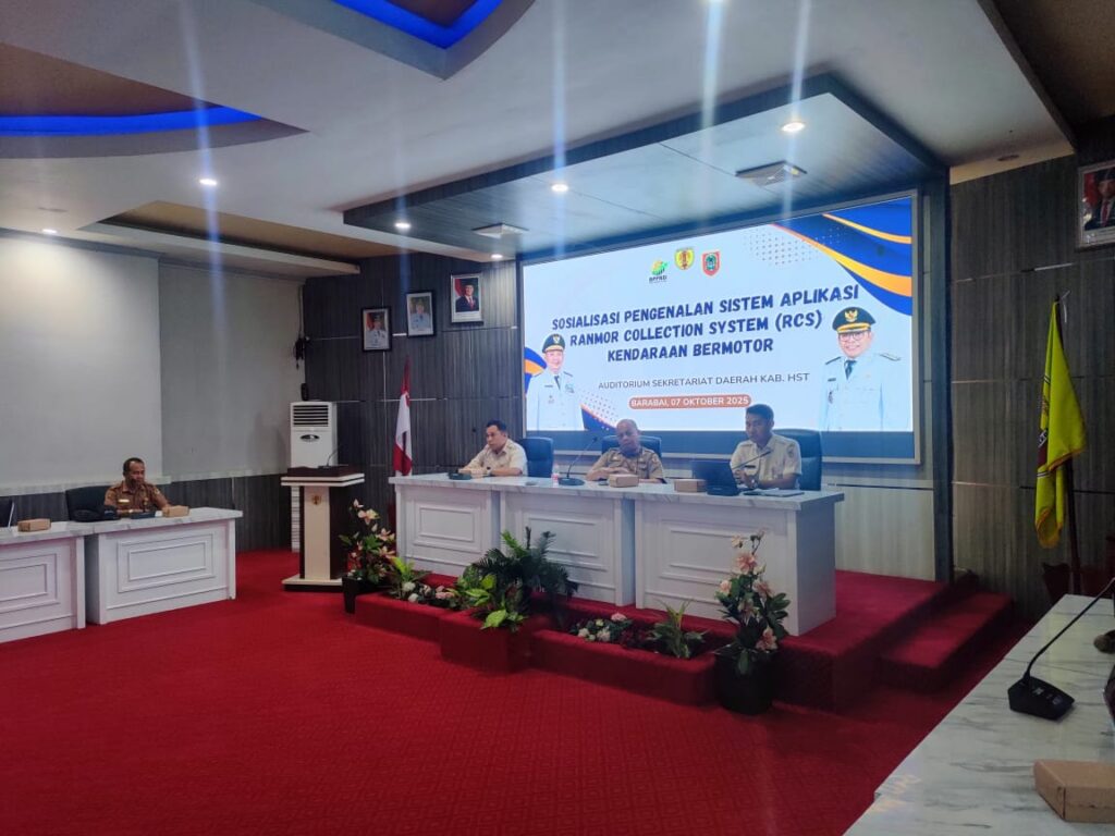 Barabai,7 Oktober 2025, kegiatan sosialisasi pengenalan Sistem Aplikasi Ranmor Collection System (RCS) kendaraan bermotor diselenggarakan di Auditorium Sekretariat Daerah Kabupaten Hulu Sungai Tengah (HST). Acara ini dibuka dengan sambutan dari Sekretaris Daerah Kabupaten HST, Drs. H. M. Yani, M.Si.,